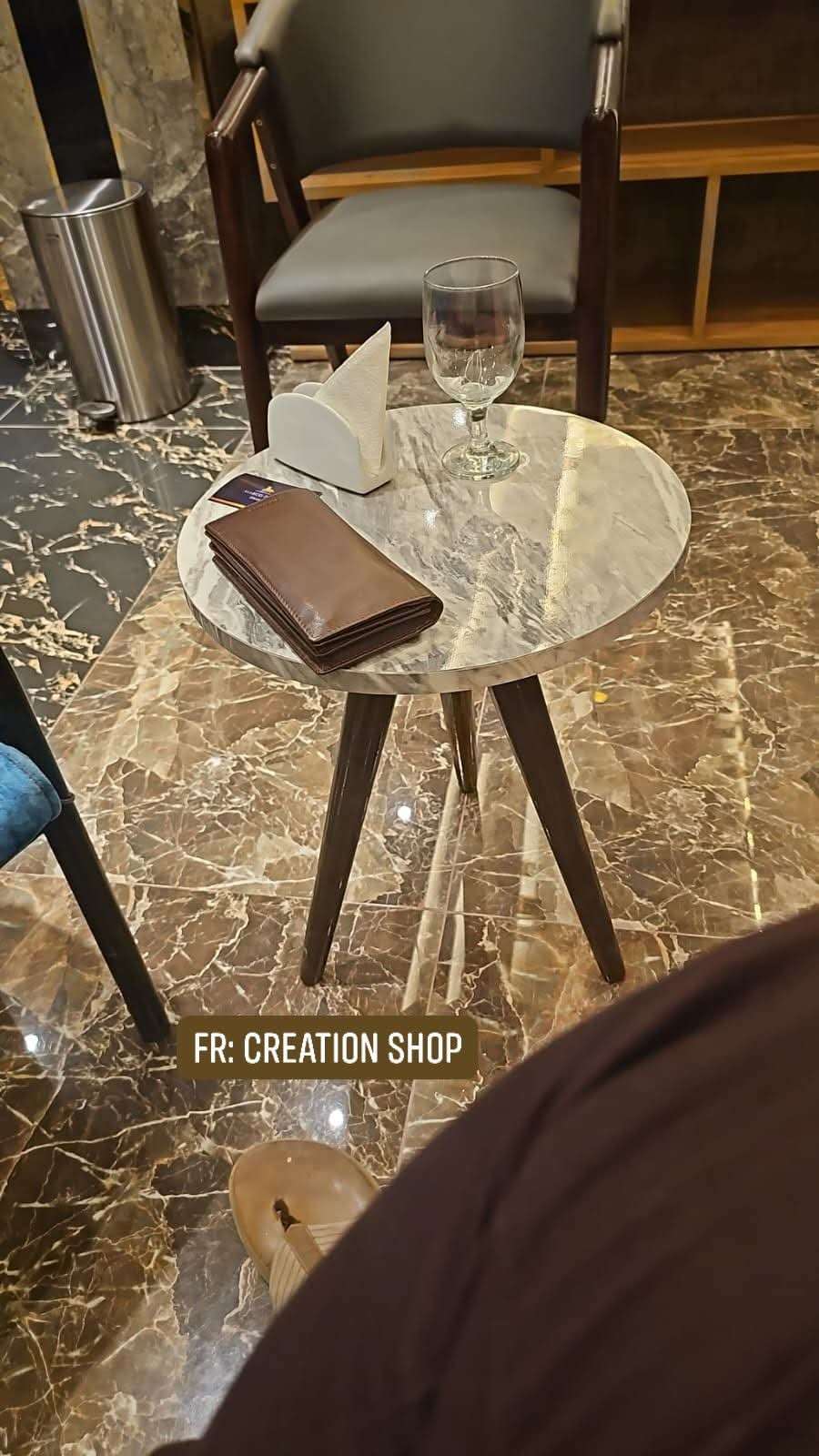 কফি টেবিল / সাদা মার্বেল HPL ,পায়া তেঁতুল বিচি কালার