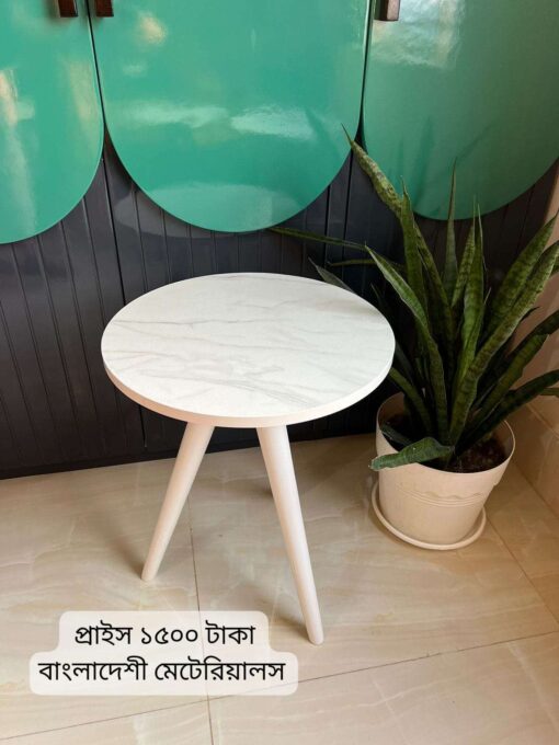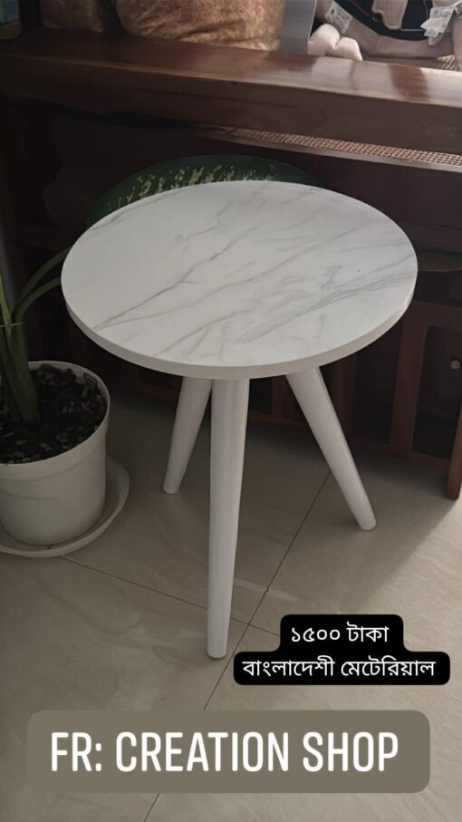 “কফি টেবিল “সাদা মার্বেল সাদা পায়া সাদা বর্ডার মেলামাইন
