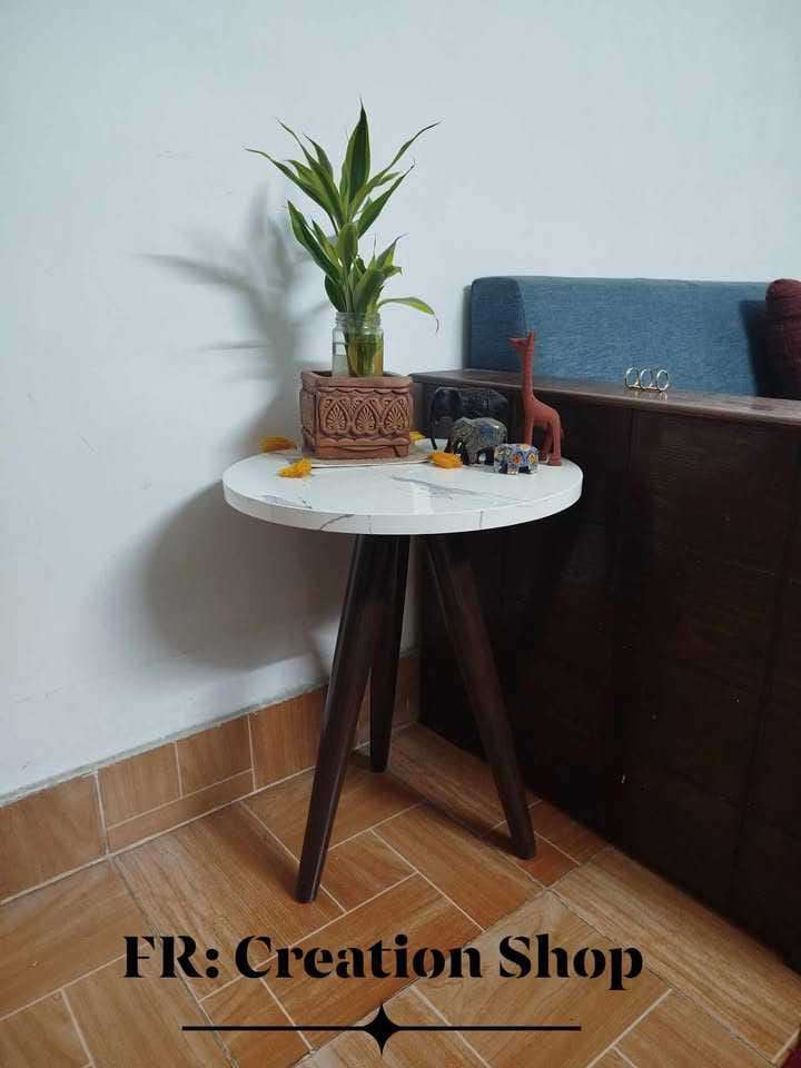 কফি টেবিল / সাদা মার্বেল HPL ,পায়া তেঁতুল বিচি কালার