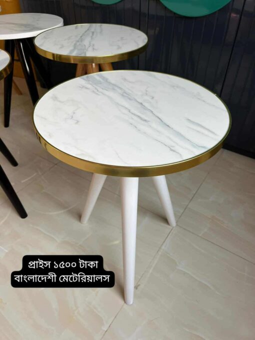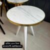 ‘কফি টেবিল’ সাদা মার্বেল সাদা পায়া গোল্ডেন বর্ডার মেলামাইন