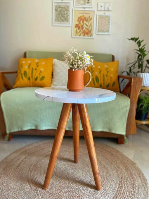 কফি টেবিল / সাদা মার্বেল HPL ,পায়া কাঠ কালার/ উডেন লেকার পলিস